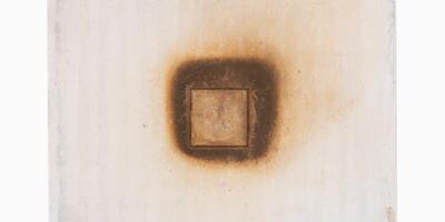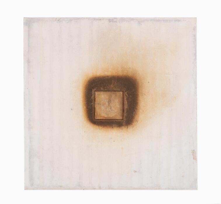 Escultura, 2023; Dibujo y óxido sobre tela; 180 x 180 cm